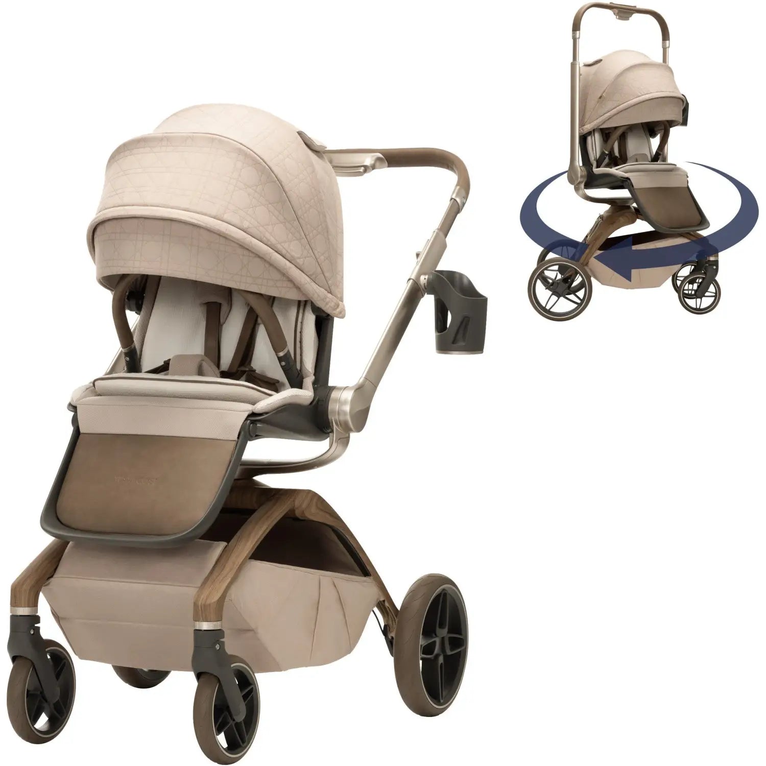 As part of the Maxi-Cosi Kindred Collection, our Tana 360° Rotating Modular Stroller reflects a timeless design crafted with premium materials that beautifully combine comfort and style with features you’ll love. Its innovative 360° rotation lets your little one see the world from two different perspectives––as the handlebar lifts and rotates 360°, your child can face you or the path ahead—while riding in the stroller seat, infant car seat, or the Carriage Accessory.