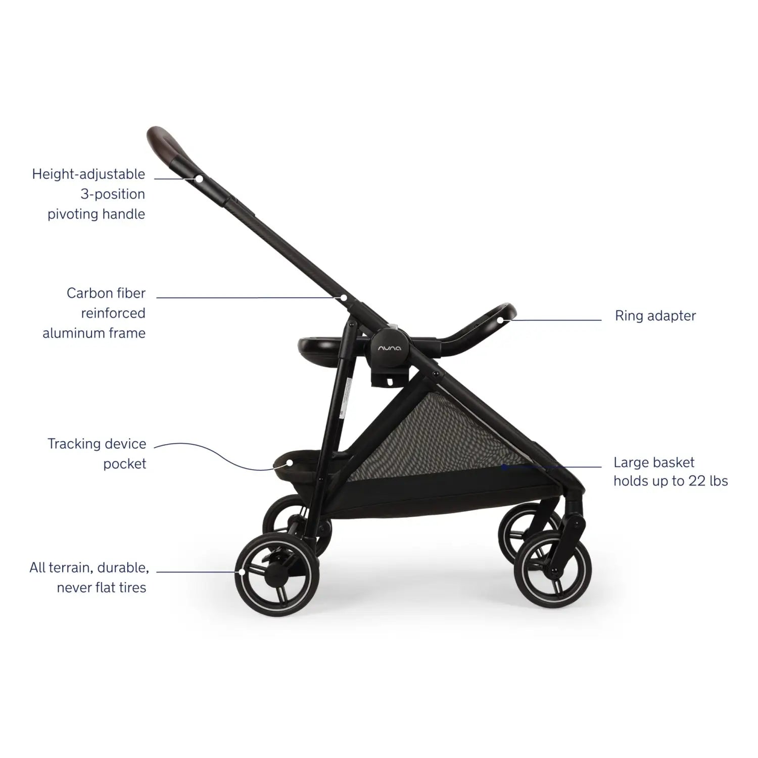 Travel system ready–compatible with the SWIV™ & TRIV™ series bassinet, the Flex system stroller seat, and any PIPA series car seat using the included folding ring adapter