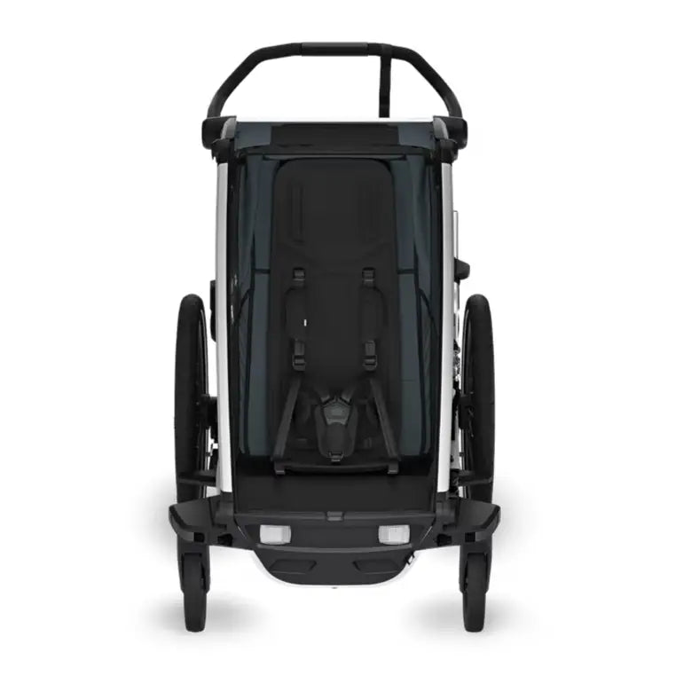 Inside the Thule Chariot Cross 2, children are greeted with plush, ergonomically designed seating for unparalleled comfort. The modular seating ability means that you can choose to have one kid sitting in the middle, or two kids on either side of the trailer. The Thule Chariot Cross 2 is committed to sustainability, utilizing materials that are not only PFAS free but resist sun damage and offer the possibility for repair or replacement, extending the lifespan of your trailer.