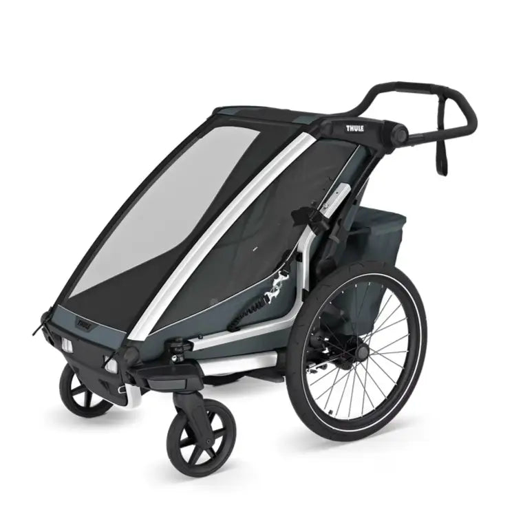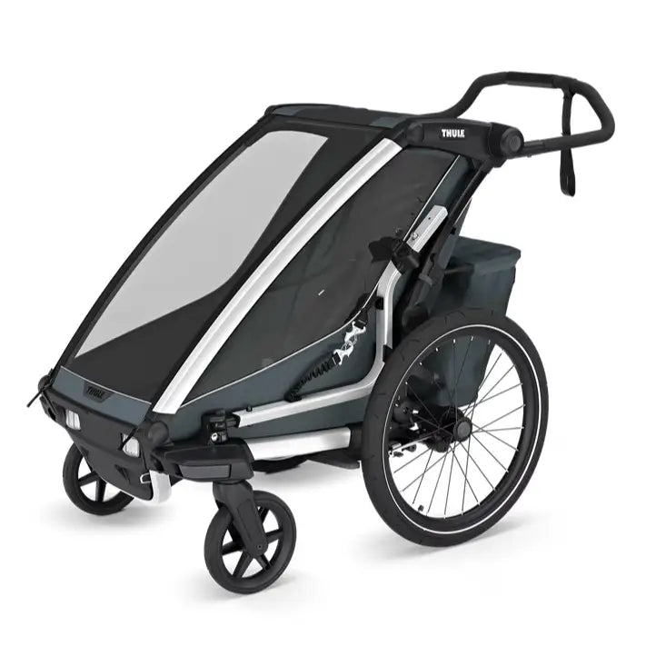 Thule Chariot Cross 2 can easily be turned into a great training companion with a Jogging Kit or a Ski Kit (sold separately). Transitions between activities are smoother and more comfortable than ever for both parent and child.