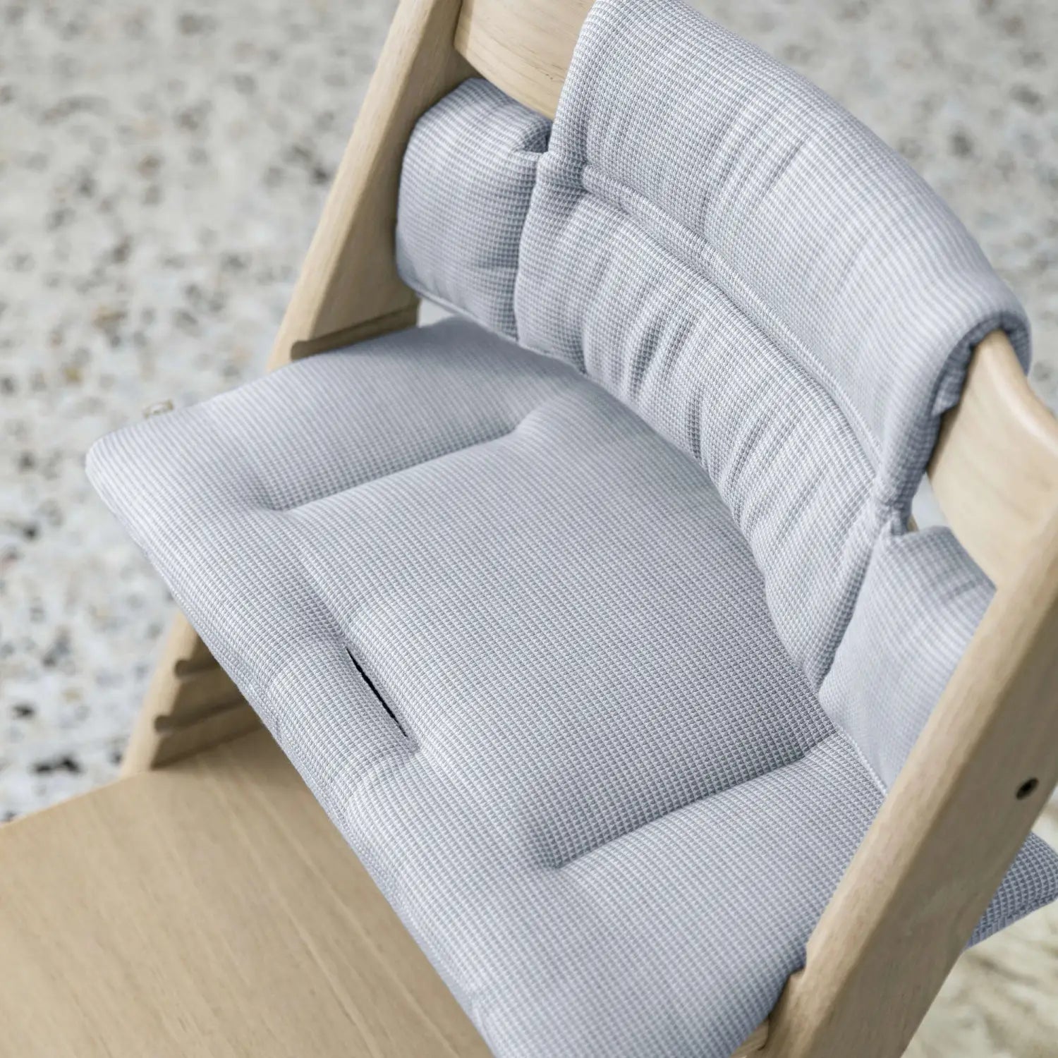 Convenient all-in-one highchair bundle that includes the Tripp Trapp chair, Tripp Trapp Baby Set², cushion, and Stokke tray. This configuration suits the needs of your child from 6 months to 3 years. Tripp Trapp Baby Set² has a new, easy, intuitive harness buckle, 2 click-in points, and a quick, one-click release button.