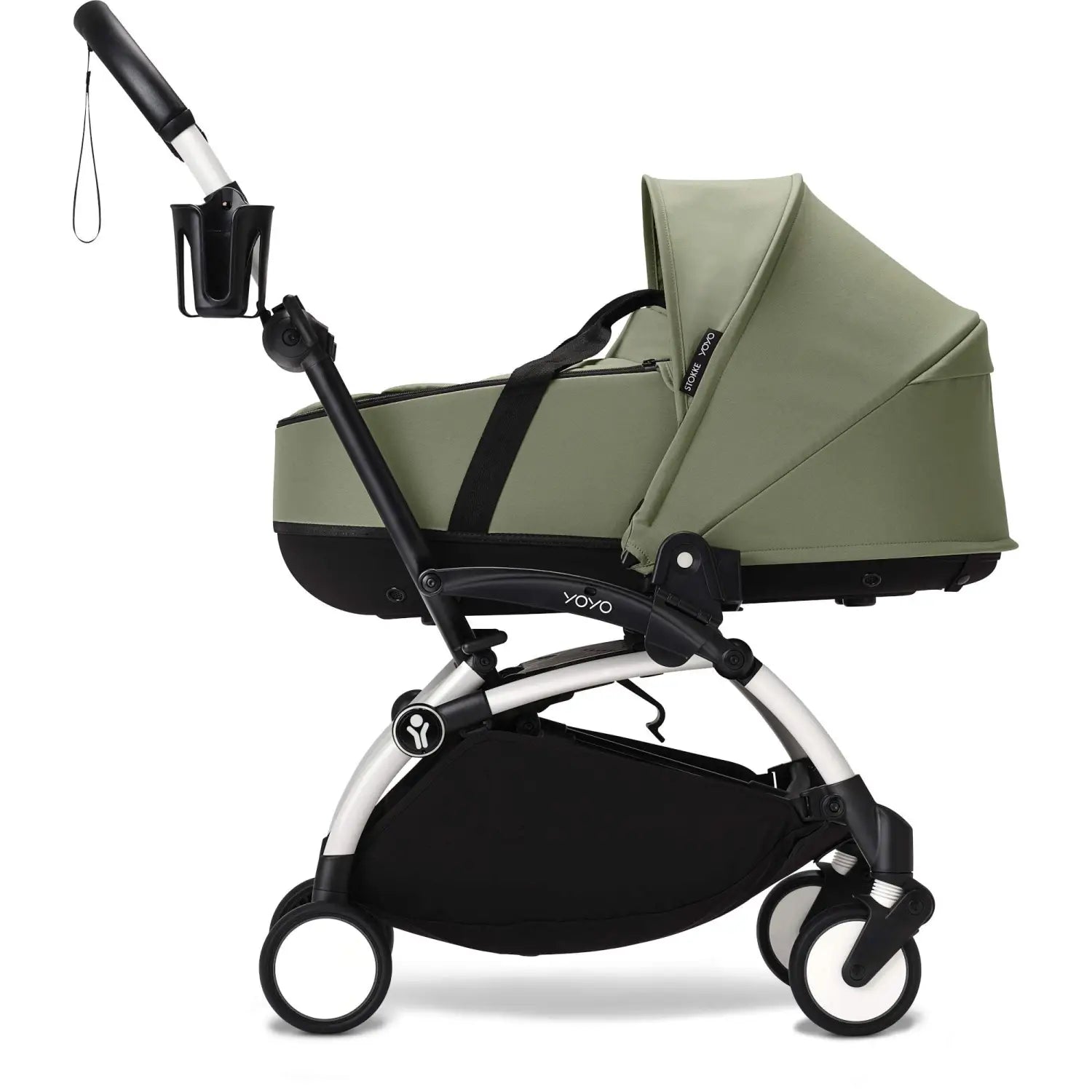 The cup holder has been specially designed for YOYO®. It is very stable, and has a hook specifically designed to be attached to 6 different points on the stroller frame. Keep your drinks close at hand by installing a cup holder for you and one for your baby.