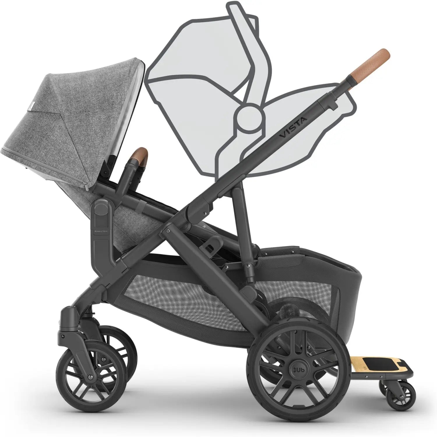 Attach this second seat to your VISTA to accommodate two in tow. The RumbleSeat V2+ features an adjustable footrest and canopy and be used forward and parent-facing. It’s the multitasking stroller seat you have only dreamed of.