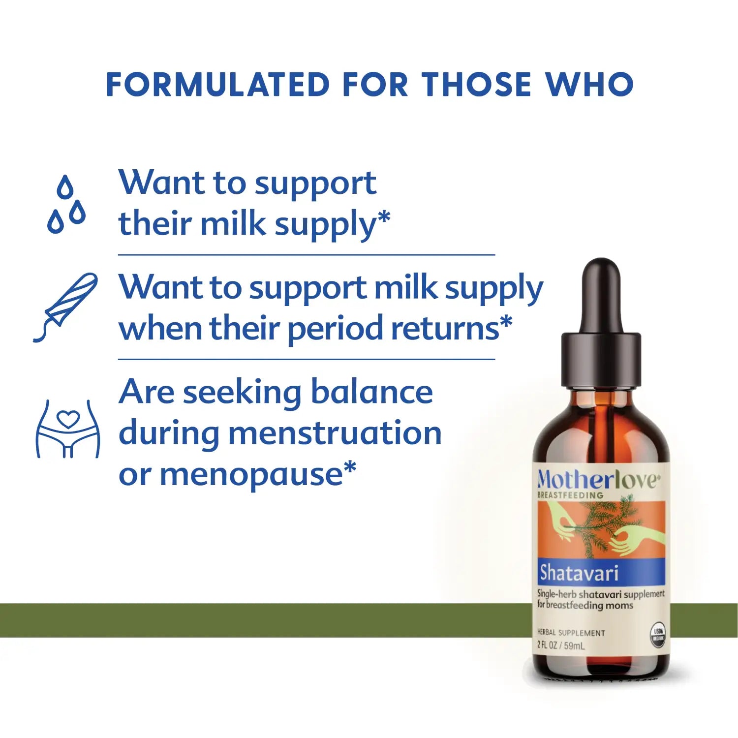 Single herb shatavari tincture to support milk supply when period returns. Size: 2 oz