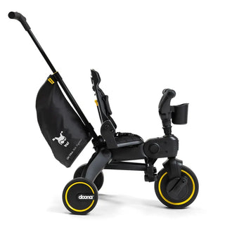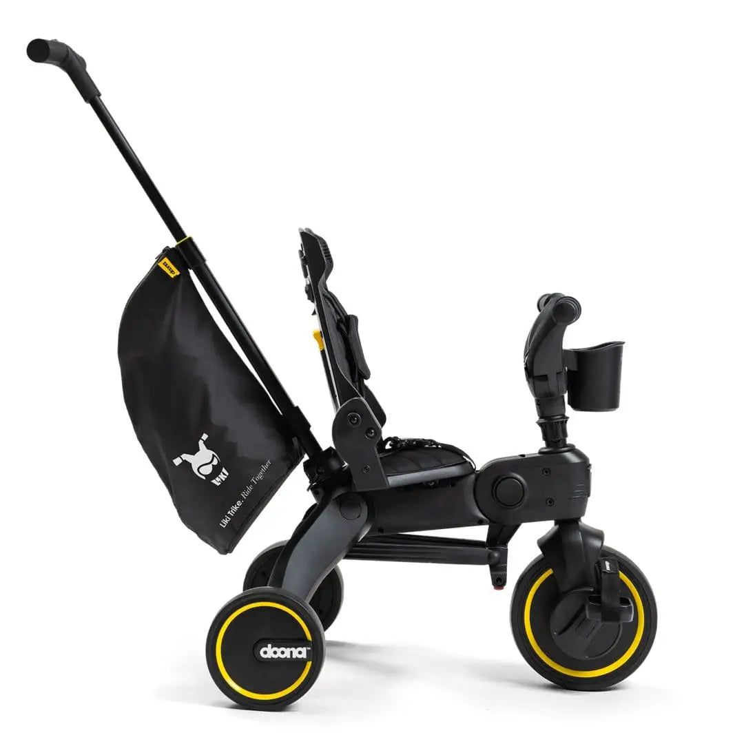 The Liki Midnight is the new way to ride in ultimate style. With a bold all black design, this edition includes elevated black faux-leather handlebars, a black anodized aluminum parent handle, and elegant faux-leather diamond-stitch backrest and seat cover.