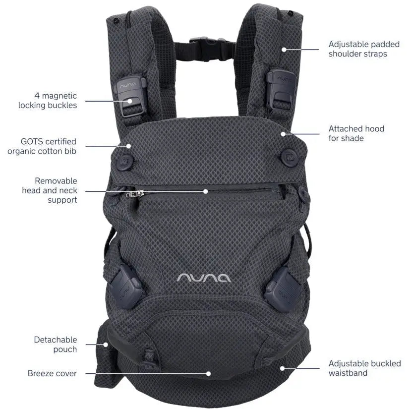 Say hello to four magnetic locking buckles that make securing simple and safe. The attached hood shades baby, while the integrated breeze cover provides extra protection when out and about. The CUDL clik ergonomically adapts from the close-to-your-heart newborn days to explore-the-world toddler stage, so you can go about the day together. Because together is always better.