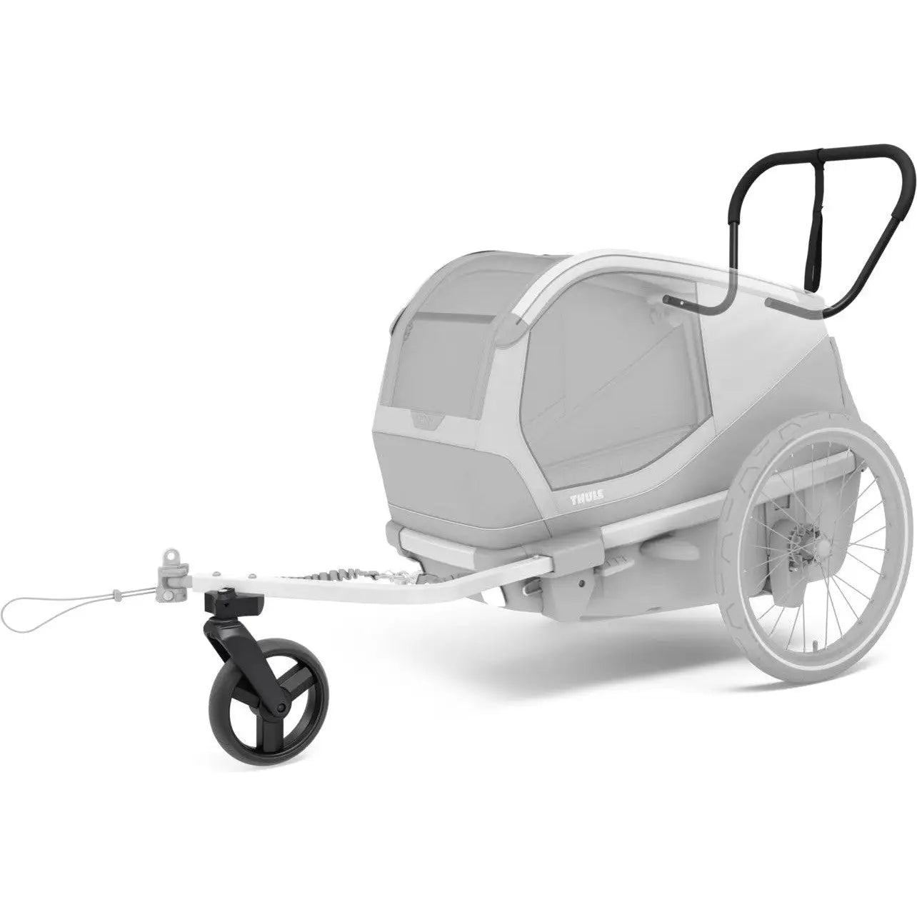 The Thule Bexey stroller kit lets you quickly turn your trailer into a stroller by adding a wheel and a handlebar. When you're biking, you can attach the stroller wheel to the hitch arm, making it easy to switch to stroller mode when you get where you're going.